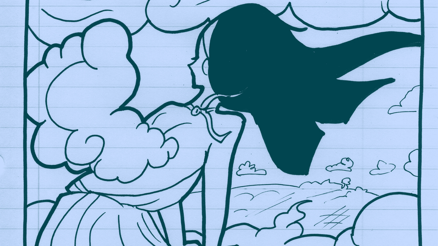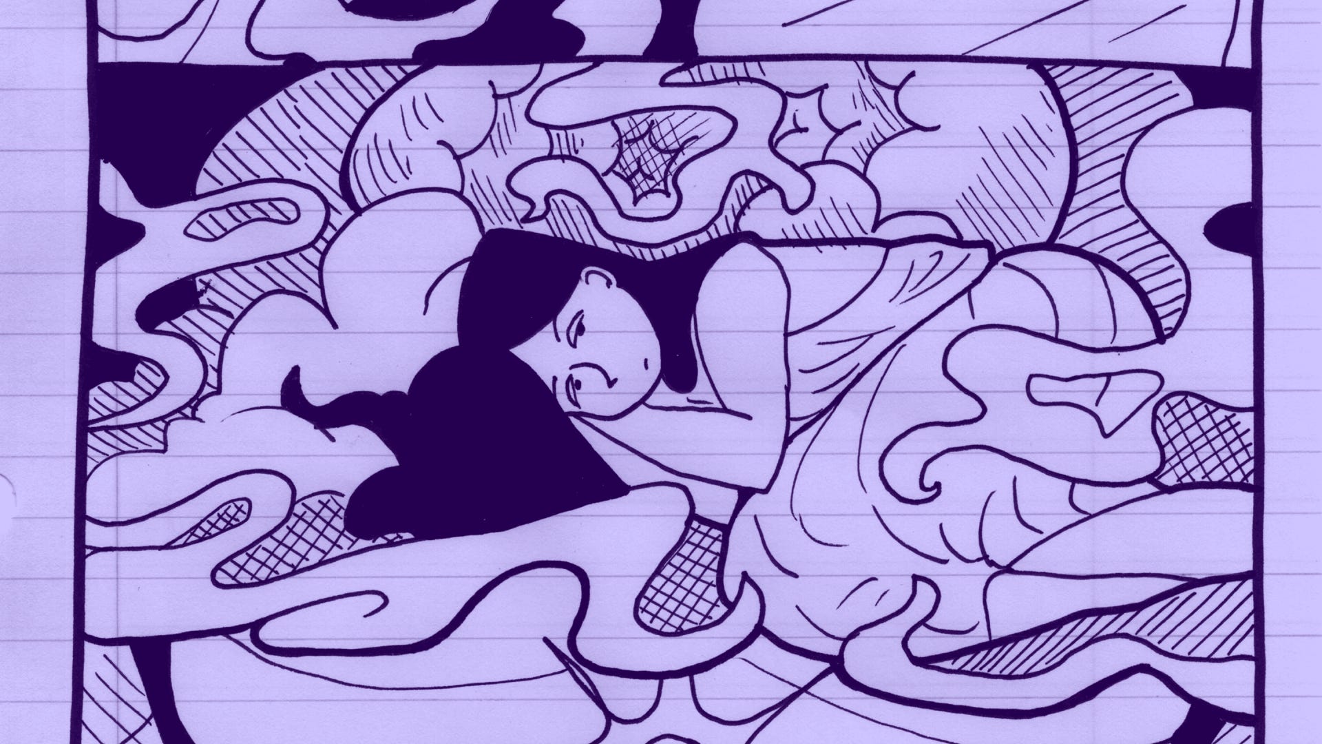 Lady reflects on her day then enters the Dream Realm through a portal inside the clouds behind the headrest of her bed.
