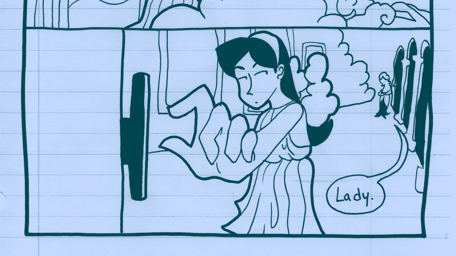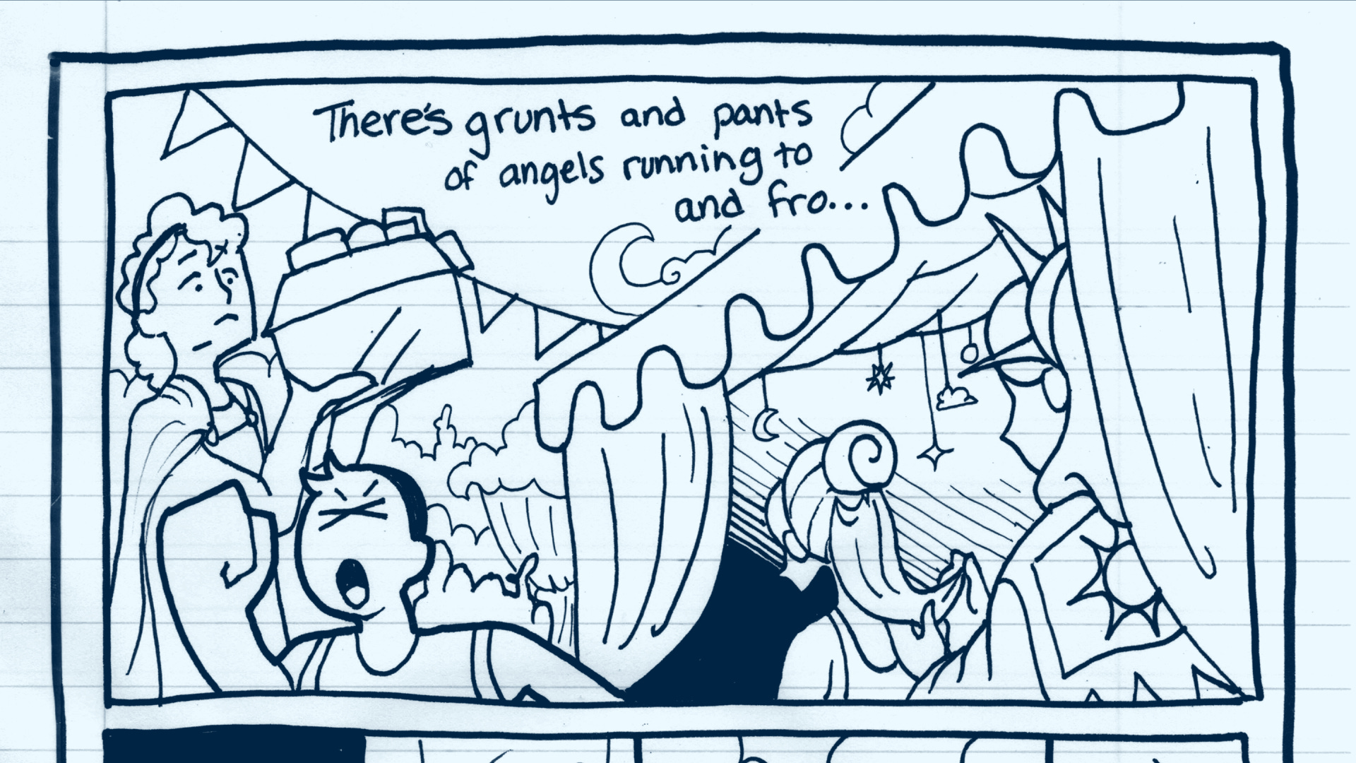 In the late evening, Lady is tasked to oversee the finalizing of projects for the festival. The streets are still crowded with angels as they seek her approval.
